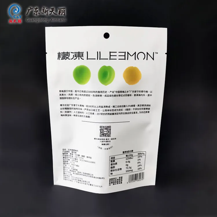 - حجب فائق للضوء والحفاظ على النضارة: تتميز أكياسنا المطبوعة خصيصًا للوجبات الخفيفة بخصائص ممتازة لحجب الضوء ومقاومة الرطوبة، مما يمنع بشكل فعال أشعة الشمس المباشرة وتسرب الرطوبة، مما يساعد على الحفاظ على النكهة الأصلية واللون والملمس الهش للفواكه والوجبات الخفيفة.