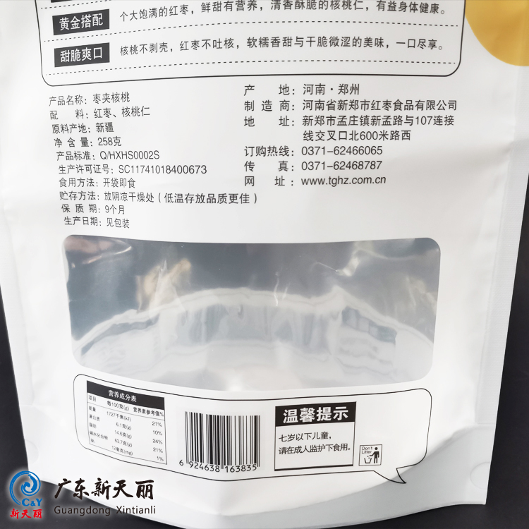 - Clear Window Design: The back of our dried fruit packaging wholesale features a window design, which enables customers to see the shape and color of the food, thereby more easily stimulating their desire to purchase.
