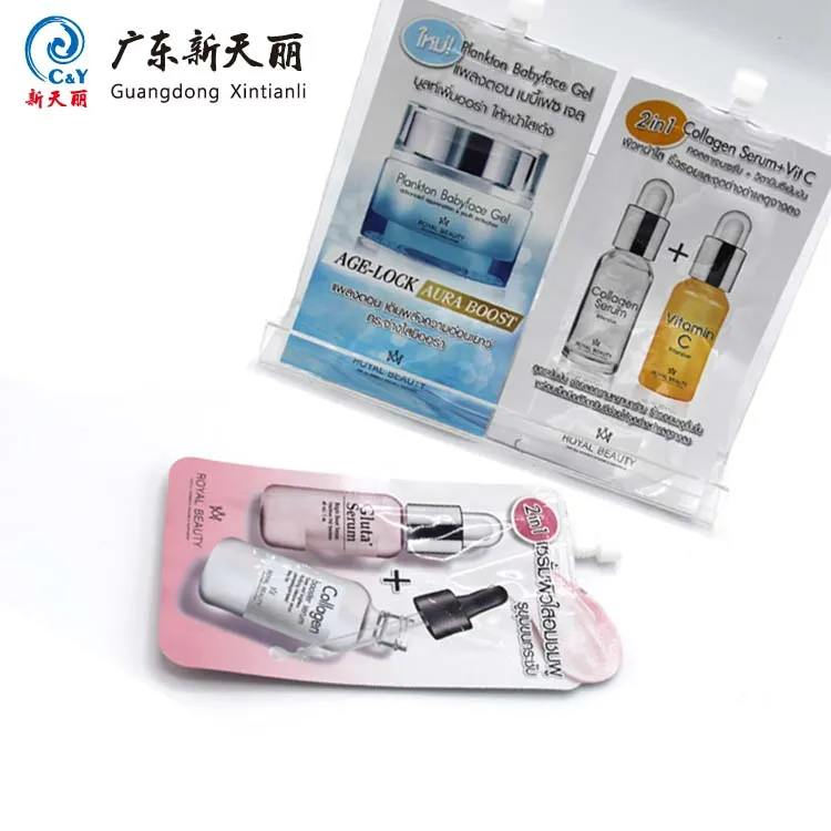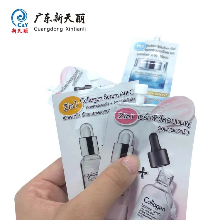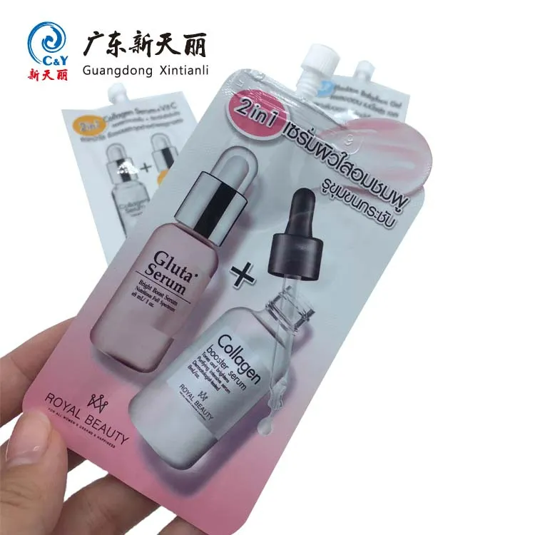 Printed Spout Pouches For Face Serums, Cosmetic Sachet Pouch