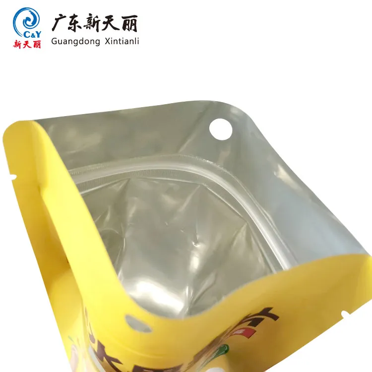 Welcome to order custom packaging pouches. Our OEM stand up zipper bags wholesale feature a zipper, tear notch, and hang hole, which is specially designed for candy, dried fruit, snacks, and other snack foods to enhance the shelf display effect of the product.