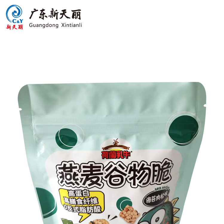 - Ultimate Freshness Preservation: This custom printed doypack is made with a PET/AL/PE composite material structure. The aluminum foil (AL) layer is in the middle and provides the best moisture, oxygen and light barrier protection, keeping cereals and snacks from softening or oxidizing, and maintaining their crisp texture and fresh flavor for quite some time.