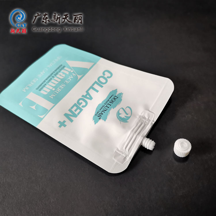 Welcome to order custom standup pouches with spout. This customized lotion pouch packaging adopts pure aluminum matte printing film, which has a high-grade texture and excellent barrier performance. Support customized printing service.