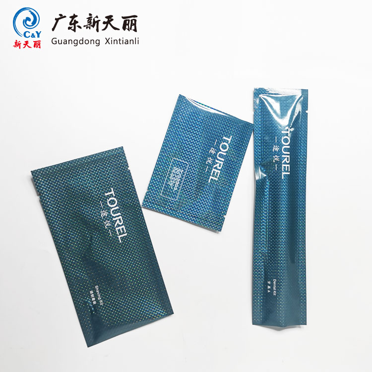 - Laser effect, attracting attention: Our custom three-sided seal pouch for hotel bath sets features a laser effect, which can catch the customers’ attention and enhance their desire to purchase.